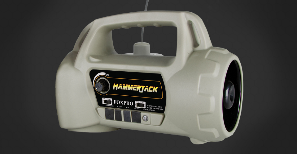 The HammerJack is portable, lightweight, and easy to operate. It comes standard with 100 high-quality FOXPRO sounds, 111 FREE sounds, and has the ability to hold up to 300 sounds. The HammerJack features dual-amplified speakers to deliver incredible volume. The front horn speaker handles your coyote vocalizations and common distress sounds with ease, and the rear cone speaker handles the low frequency sounds such as bear growls, owl sounds, and even mountain lion sounds. When combined, they deliver a crisp, clear, high-quality, realistic sound. If you want even more volume, the HammerJack allows you to connect two external speakers for incredible volume capabilities. It has a charge jack, auxiliary jack, and includes the FoxJack 4 with the FOXPRO Fuzzy Wuzzy topper.