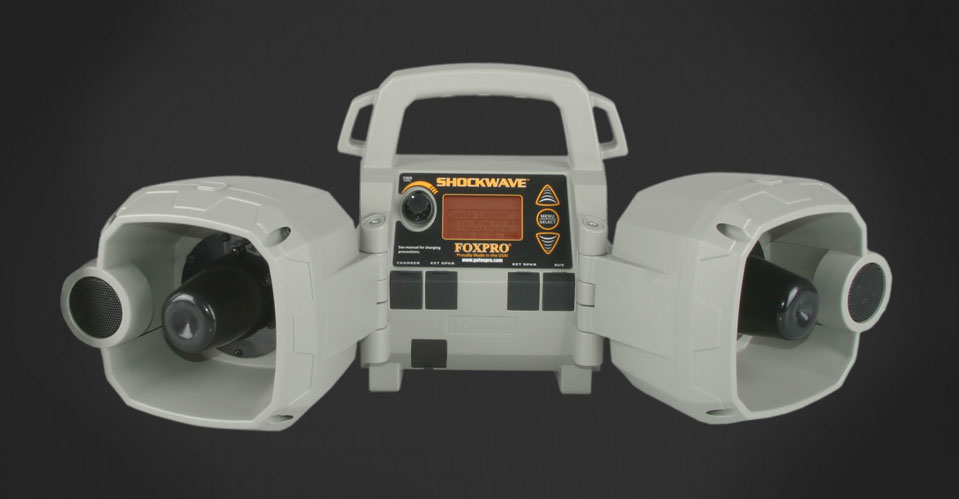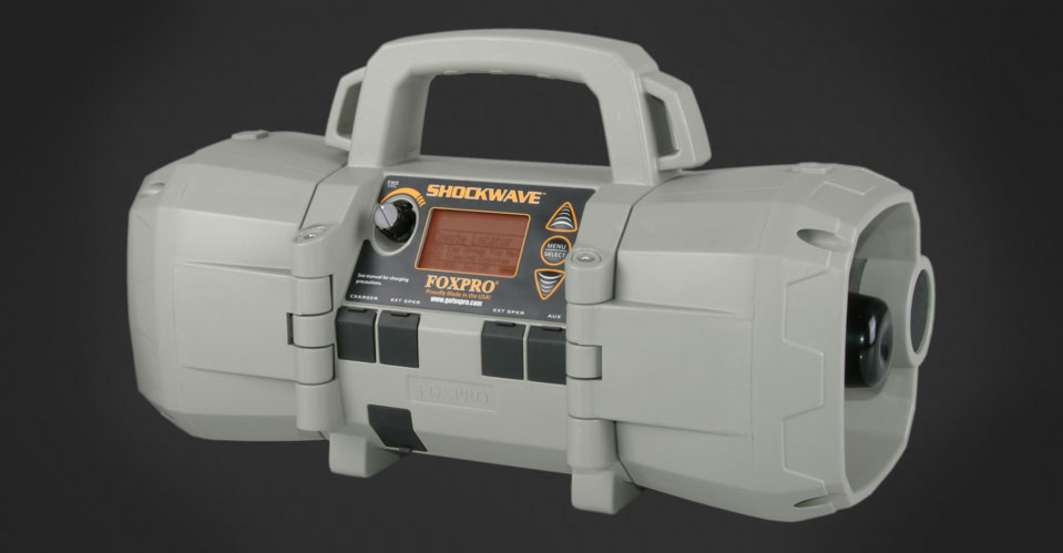 FOXPRO has set the bar, once again, with the SHOCKWAVE! This four speaker system has two horn speakers and two tweeters for excellent sound quality and volume capability. There are 2 external speaker jacks if you desire even more volume, an auxiliary jack to connect an approved device such as a Jack Predator Decoy, and a charge jack.
