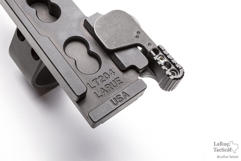 It’s essentially the legacy LaRue Combat Proven QD mount, with the slight change of no wrench needed to adjust the lever to the Picatinny rail. You adjust it by “clicking” the proprietary thumb nuts, much like clicking your scope turrets. Its very-fine click adjustment is real close to an infinite adjustment.