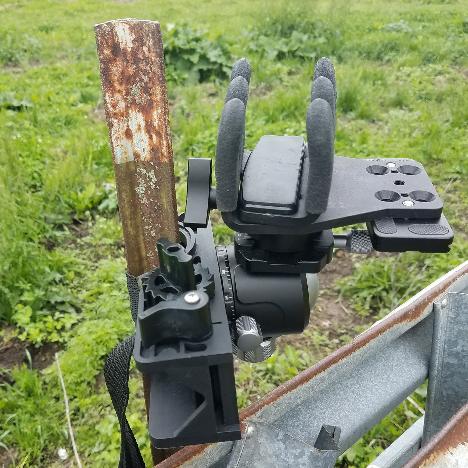 Shooters and hunters, attach a ball head mounted shooting systems such as Pig Saddle, Reaper Grip, M-LOK to ARCA or Picatinny to ARCA plates to objects in the field for a steady rest. (Use that existing pole, fence, handrail, or post to hold and/or stabilize your shots)