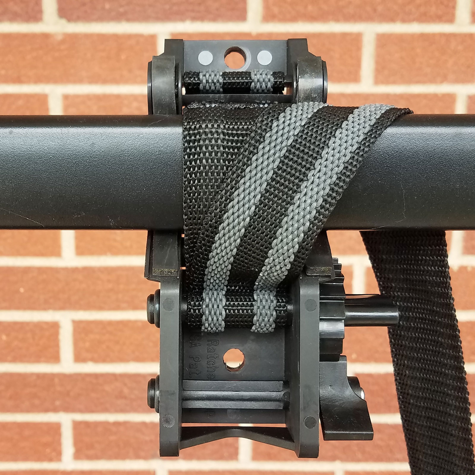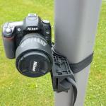 Fox Optic heavy-duty ratcheting strap clamp grips items from 1/2" up to 8" or 12mm to 203mm in diameter, allowing for steady camera, DSLR, video, binocular, spotting scope, night vision, etc mounting using a simple tripod ball head. Compact alternative to carrying a Tripod. Great for attaching a ball head to handrails, posts, gates, poles, pretty much anything you can get the strap around. Super compact and lightweight, perfect for times when a tripod footprint is too large or you would like a bit more stabilization and there is a fixed object in the location. Attractive black 1.5" wide (38mm) by approx. 35" or 0.9m heavy-duty nylon strap webbing with grey non-slip and non-mar impregnated rubber grip surface. Included 3/8-16 bolt and 7/32 hex key wrench allows 3 different bolt positions. Allows a wide variation of camera ball head mounting options "in the field".
