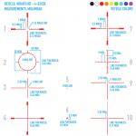 Minimum distances each color will shine with a fully charged battery in spot beam in yards: Red = 1050, Green = 1770, White = 1650.