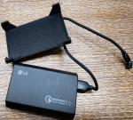 External 6700 mAh LG battery pack with led light indication lights, and charging cord